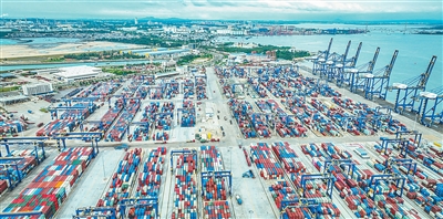 海南洋浦国际集装箱码头作业繁忙。 张 茂摄