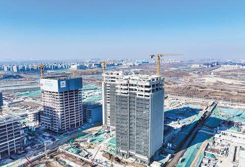作为金融岛片区首个开工的市场化项目,财富大厦目前全面进入机电安装和装饰装修阶段。 本报见习记者 李 畅摄